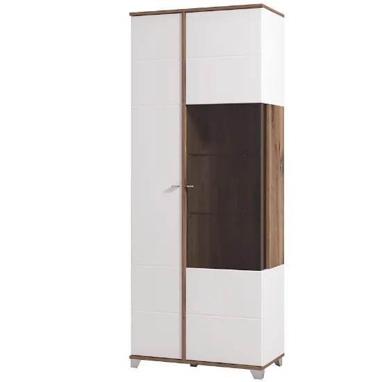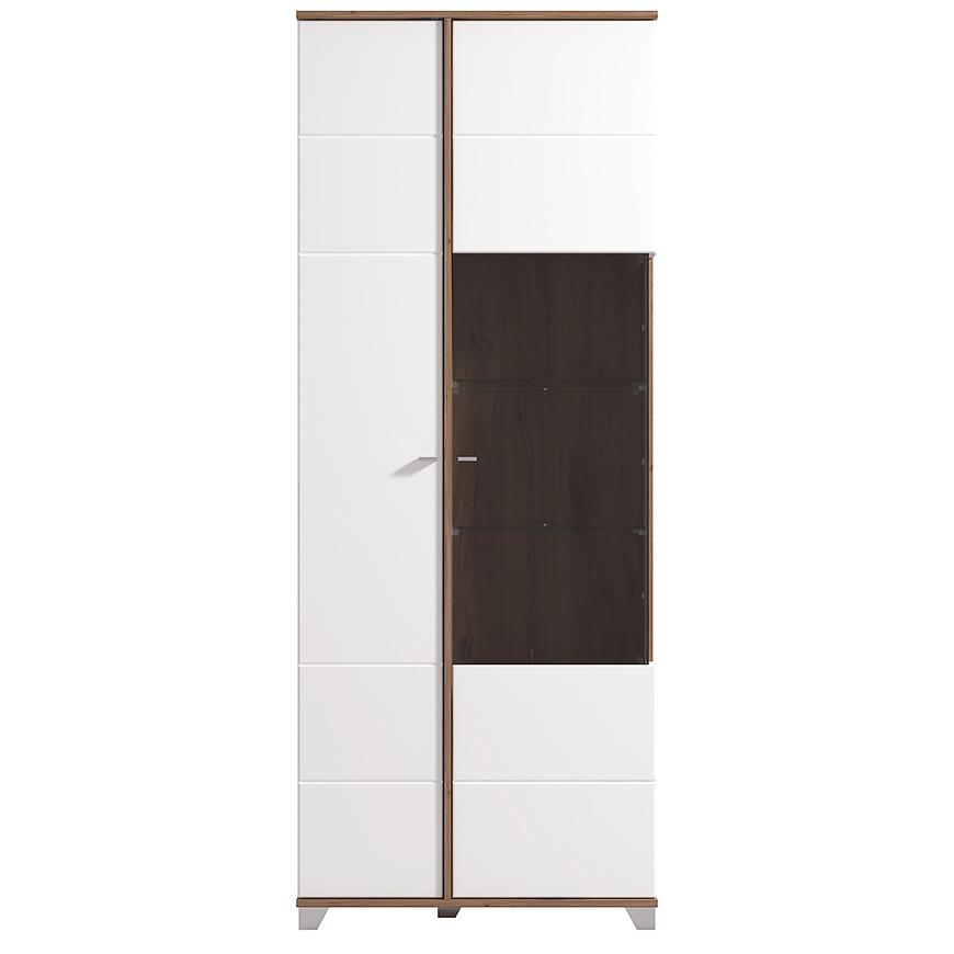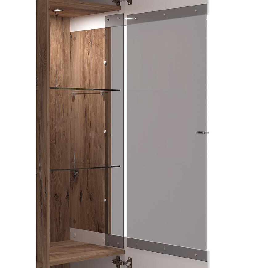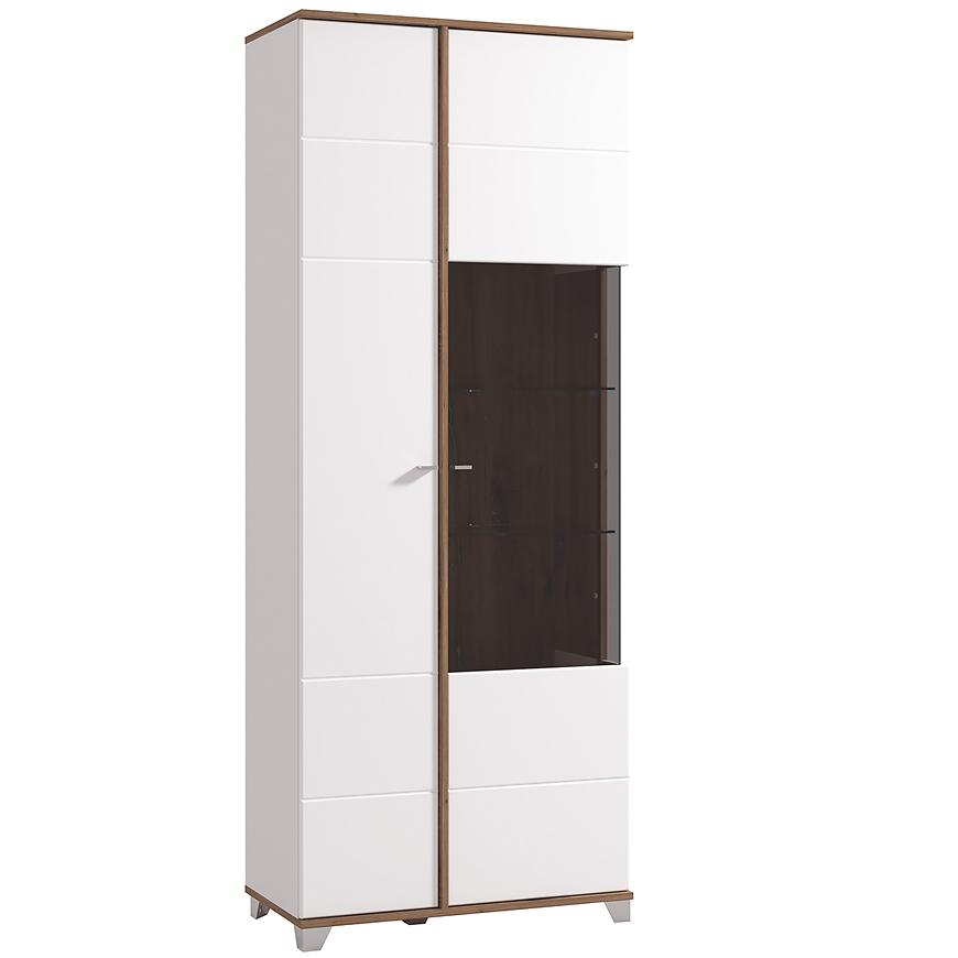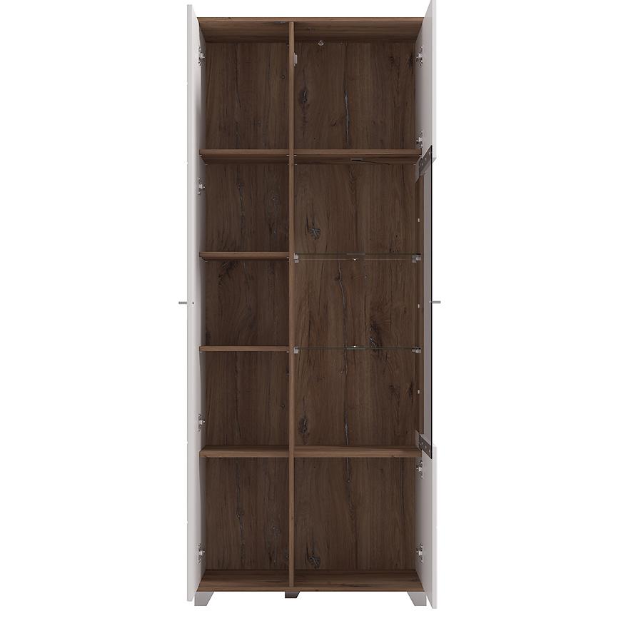 Witryna 200 Burgundy 11012062 to nowoczesny i elegancki mebel, wykonany z wysokiej jakości płyty wiórowej laminowanej z połączeniem białych frontów w połysku i korpusu w kolorze dąb masztowy. Wyposażona w cztery półki i dwudrzwiową konstrukcję, zapewnia praktyczne miejsce do przechowywania. Wymiary 197x78,5x40 cm oraz matowe wykończenie korpusu gwarantują stabilność i trwałość. Witryna wymaga samodzielnego montażu i łączy estetykę, funkcjonalność i nowoczesny styl kolekcji BURGUNDY.