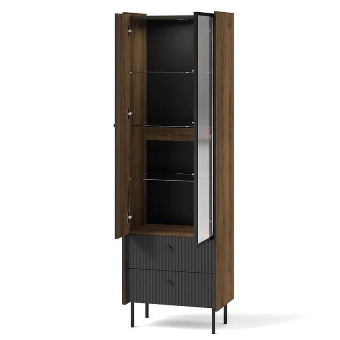 Witryna Prestigo świetnie prezentuje się w nowoczesnych, a także w klasycznych wnętrzach. Witryna to praktyczny i funkcjonalny mebel.Korpus i front wykonany jest z płyty wiórowej laminowanej. Posiada szkło żaluzjowe (front) / dwie półki szklane. Mebel będzie doskonałym dodatkiem do każdego wnętrza ze względu na swoją uniwersalną kolorystykę.