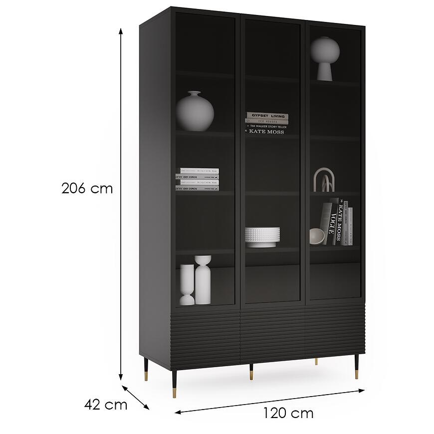 Witryna Imperial to elegancki i nowoczesny mebel, który doskonale sprawdzi się w salonie, jadalni czy gabinecie. Dzięki imponującym wymiarom 206 cm wysokości, 120 cm szerokości i 42 cm głębokości, oferuje przestrzeń do przechowywania książek, dekoracji, szkła czy innych przedmiotów codziennego użytku. Jej czarne, matowe wykończenie frontów i korpusu nadaje wnętrzu minimalistycznego, stylowego charakteru, który łatwo dopasować do nowoczesnych aranżacji.