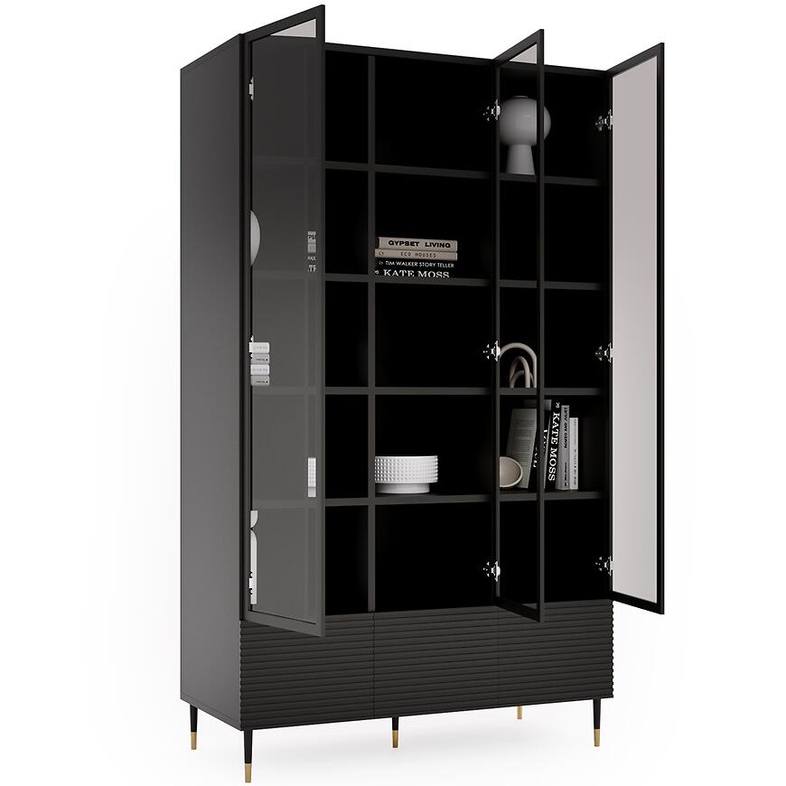 Witryna Imperial to propozycja dla osób szukających czarnej, nowoczesnej witryny o dużej pojemności i wysokiej jakości wykonania. Dzięki solidnym materiałom, dużej liczbie półek i stylowemu designowi stanowi zarówno element dekoracyjny, jak i praktyczny w codziennym użytkowaniu. Idealnie sprawdzi się w salonie, jadalni, gabinecie czy pokoju gościnnym, dodając wnętrzu elegancji i nowoczesnego charakteru.