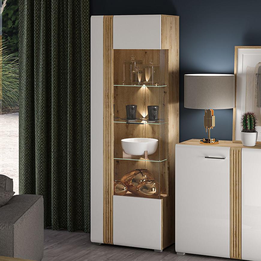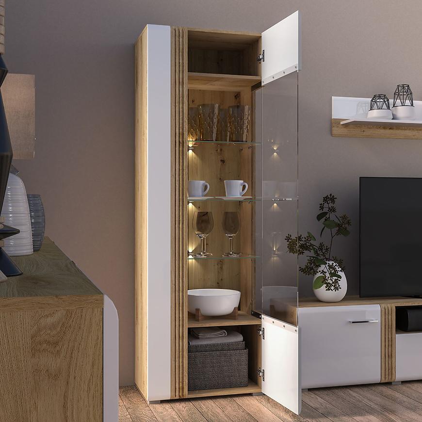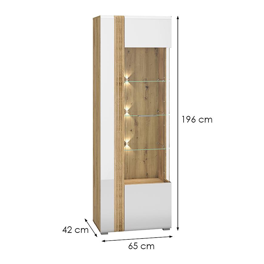 Witryna Adagio to nie tylko miejsce do przechowywania, ale również elegancki element aranżacyjny, który wnosi nowoczesny charakter do Twojego wnętrza. Z imponującą wysokością 196 cm, szerokością 65 cm i głębokością 42 cm, ta jednodrzwiowa witryna doskonale łączy funkcjonalność z estetyką.