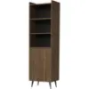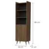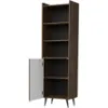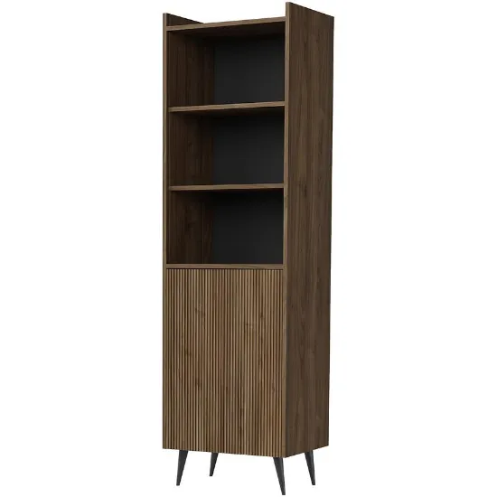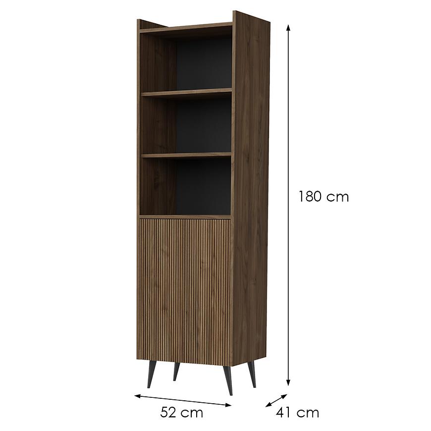 Witryna została wykonana z trwałej płyty wiórowej laminowanej, co zapewnia jej odporność na codzienne użytkowanie. Mebel wyposażono w 3 praktyczne półki oraz jednodrzwiowe zamknięcie, co czyni go doskonałym miejscem do przechowywania książek, dekoracji czy zastawy stołowej.