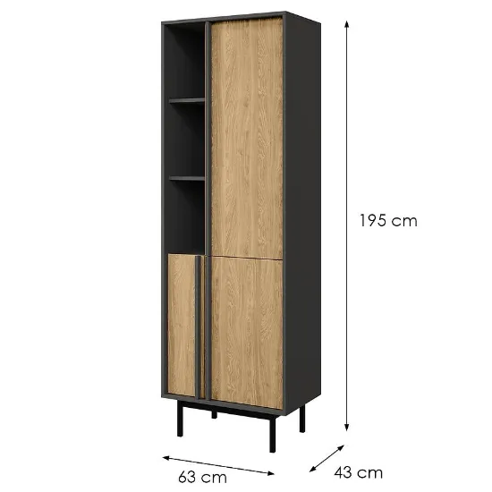 Wprowadź do swojego wnętrza nowoczesny styl i praktyczne rozwiązania dzięki witrynie Alsy w kolorze Dąb Olejowany/Antracyt. Ten elegancki mebel z kolekcji Alsy zachwyca minimalistycznym designem i matowym wykończeniem, które nadaje całości subtelnej, a zarazem wyrafinowanej estetyki. Idealnie wpasuje się zarówno w salonie, jadalni, jak i domowym biurze.