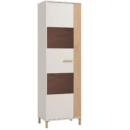 Witryna jednodrzwiowa z półkami to świetne rozwiązanie do eksponowania ulubionych dodatków.