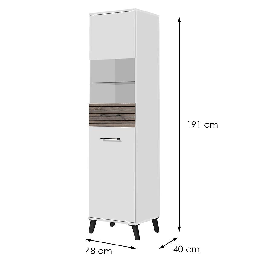 Witryna Carlo świetnie prezentuje się w nowoczesnych, a także w klasycznych wnętrzach. Witryna to praktyczny i funkcjonalny mebel. Korpus i front wykonany jest z płyty wiórowej laminowanej. Mebel posiada 2 półki, będzie doskonałym dodatkiem do każdego wnętrza ze względu na swoją uniwersalną kolorystykę.