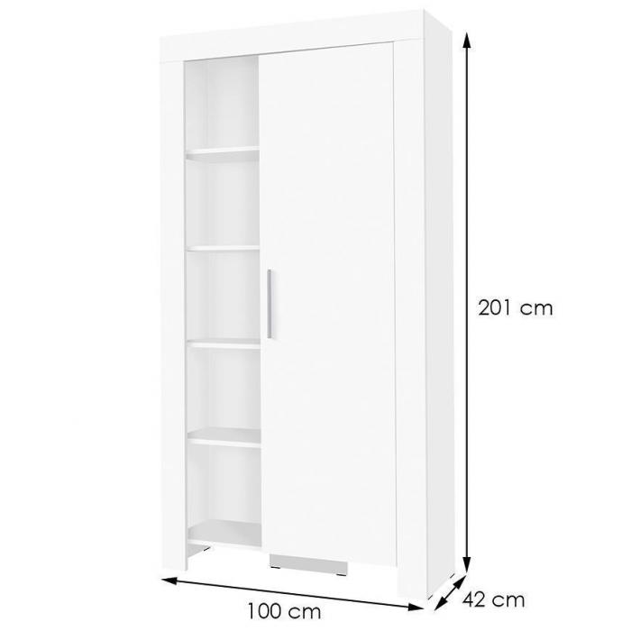 Witryna z kolekcji Cezar została wykonana z płyty wiórowej laminowanej w kolorze białym. Witryna posiada półki, na których można ustawić Nasze ulubione drobiazgi, książki. Witryna jest jednodrzwiowa i posiada 5 półek.