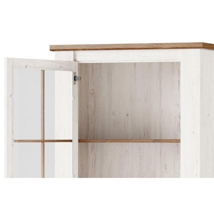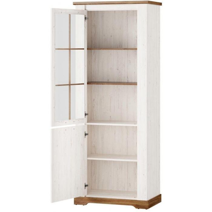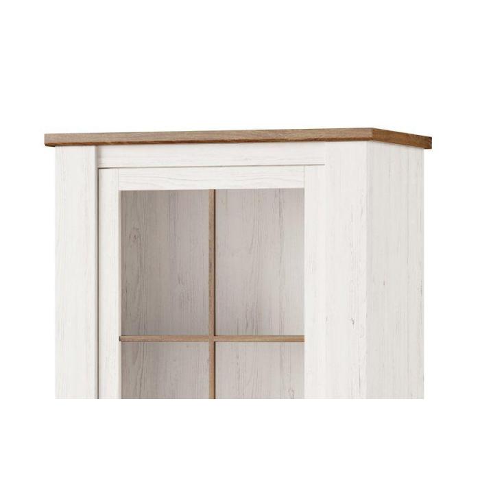 Witryna Country 10 to niezwykle stylowy mebel, który sprawdzi się w pomieszczeniach w stylu prowansalskim oraz klasycznym. Idealna kompozycja kolorystyczna dębu stirling z sosną andersen nadaje meblowi lekkości, częściowe przeszklenie pozwala wyeksponować zastawę lub dekoracje. Witryna posiada 2 uniwersalnych drzwi - montaż prawo lub lewo stronny dzięki czemu pasuje do każdego salonu lub jadalni.