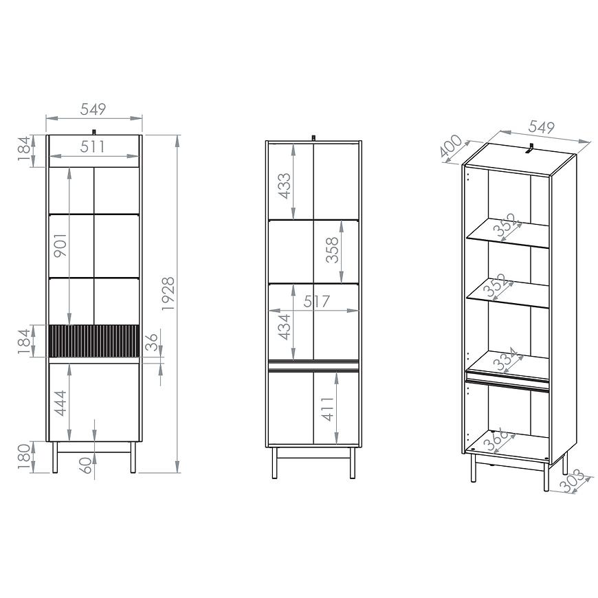 witryna dwudrzwiowa (dwie wersje) – przestrzeń do eksponowania dodatków i szkła, z opcją podświetlenia LED za dopłatą,