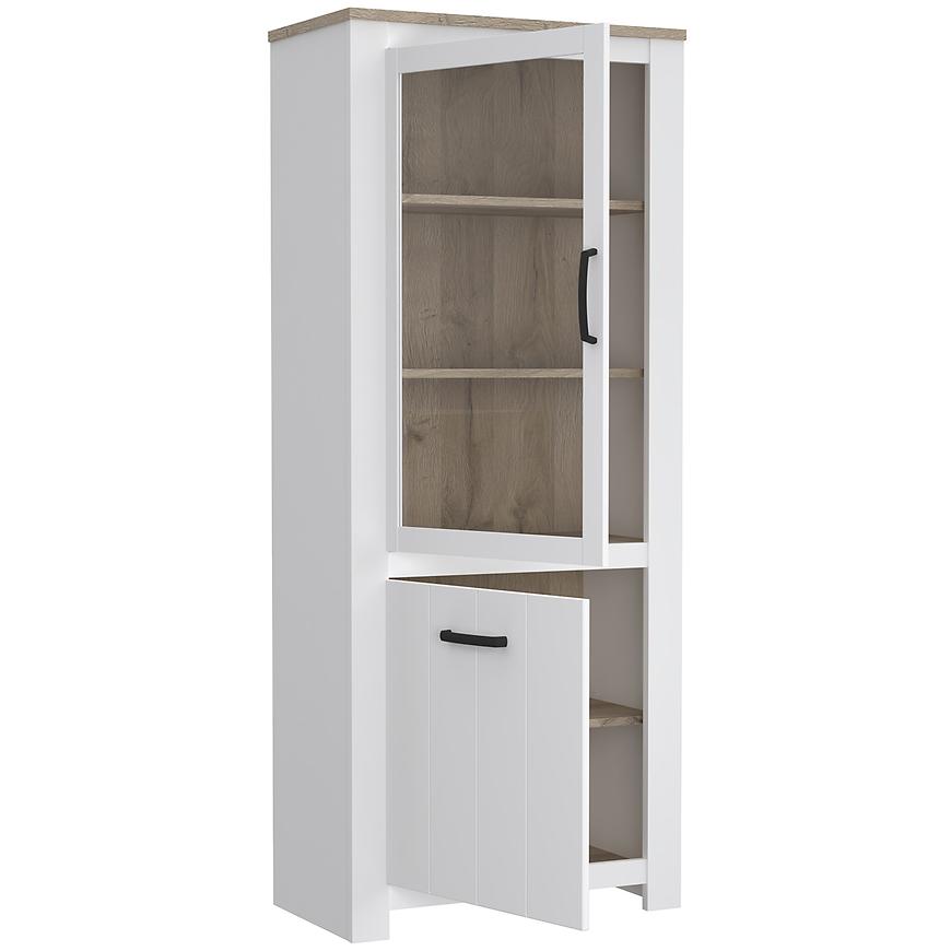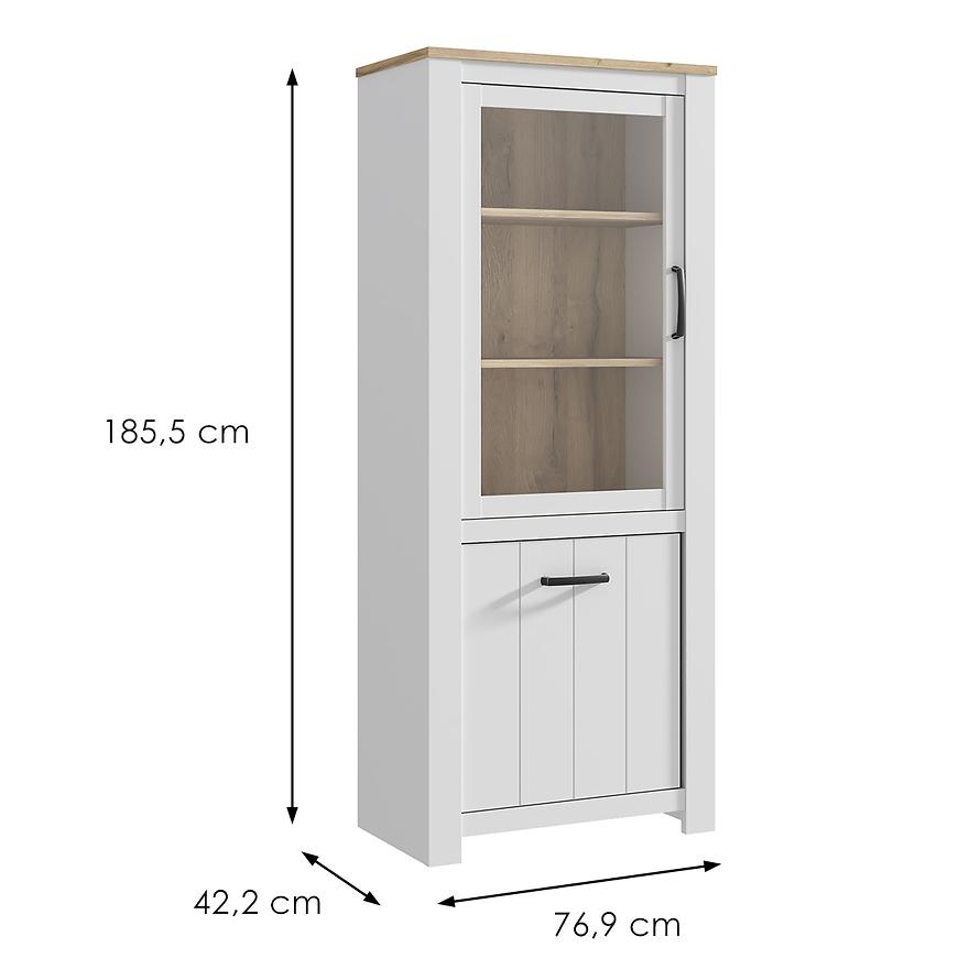 Witryna Elara to idealny wybór do salonu, jadalni czy gabinetu, gdzie pełni funkcję zarówno praktyczną, jak i dekoracyjną. Może służyć do wyeksponowania ulubionych dekoracji, kolekcji, szkła czy książek, wprowadzając do wnętrza nowoczesny i stylowy akcent. Jej uniwersalny design sprawia, że witryna Elara doskonale komponuje się z różnorodnymi stylami wnętrzarskimi, dodając im elegancji i charakteru.