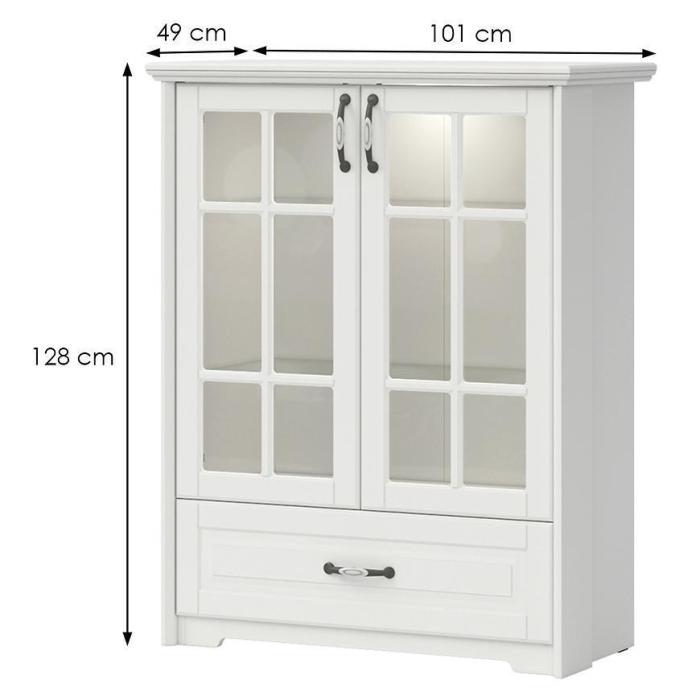 Kolekcja Evergreen świetnie prezentuje się w klasycznych wnętrzach. Witryna to praktyczny i funkcjonalny mebel, wykonana z płyty MDF lakierowanej/płyty wiórowej lakierowanej. Posiada 2 półki. Mebel będzie doskonałym dodatkiem do każdego wnętrza ze względu na swój kolor.