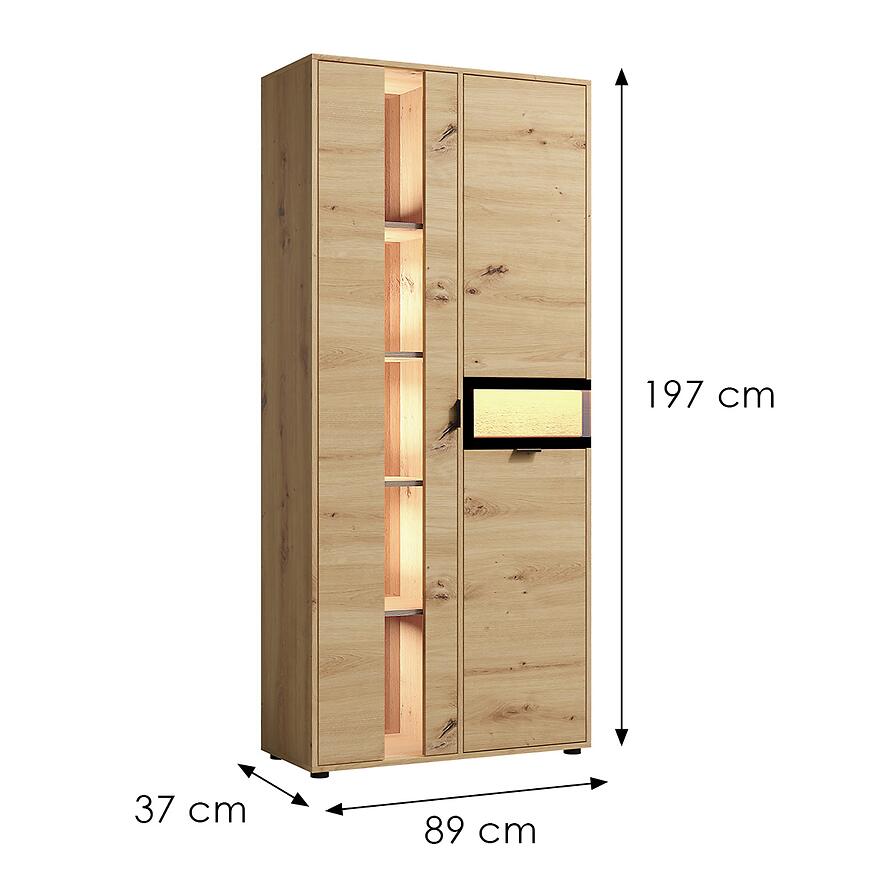 Witryna Evolution Wysoka Ev/2 Artisan/Wood to elegancki, nowoczesny i praktyczny mebel, który łączy estetykę z funkcjonalnością. Dzięki dużej pojemności, solidnej konstrukcji i subtelnemu oświetleniu LED stanowi doskonałe uzupełnienie każdego wnętrza, podkreślając jego charakter i dbając o wygodę użytkowania na co dzień.