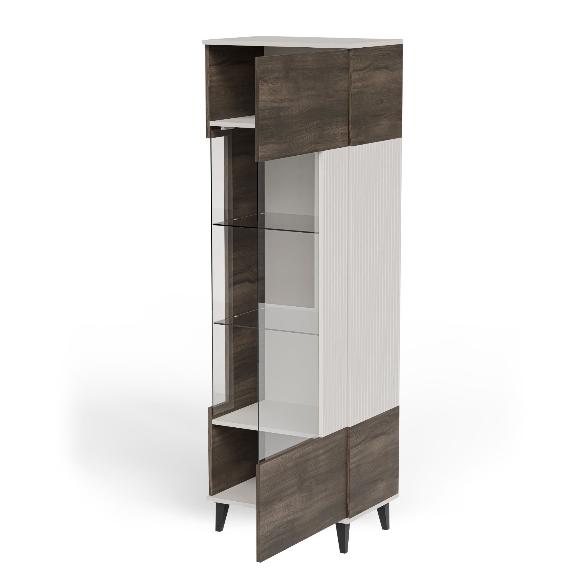 Witryna z półkami i drzwiami uchylnymi – praktyczne przechowywanie