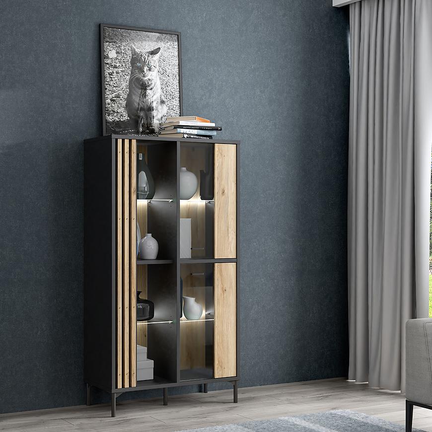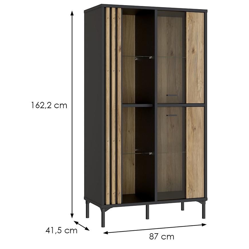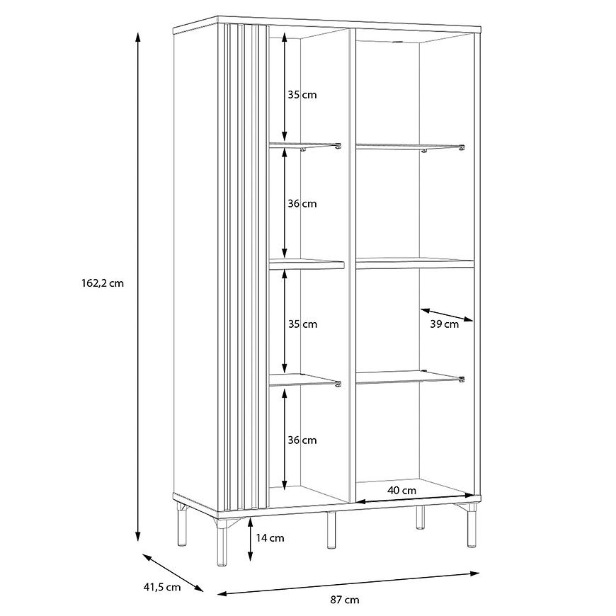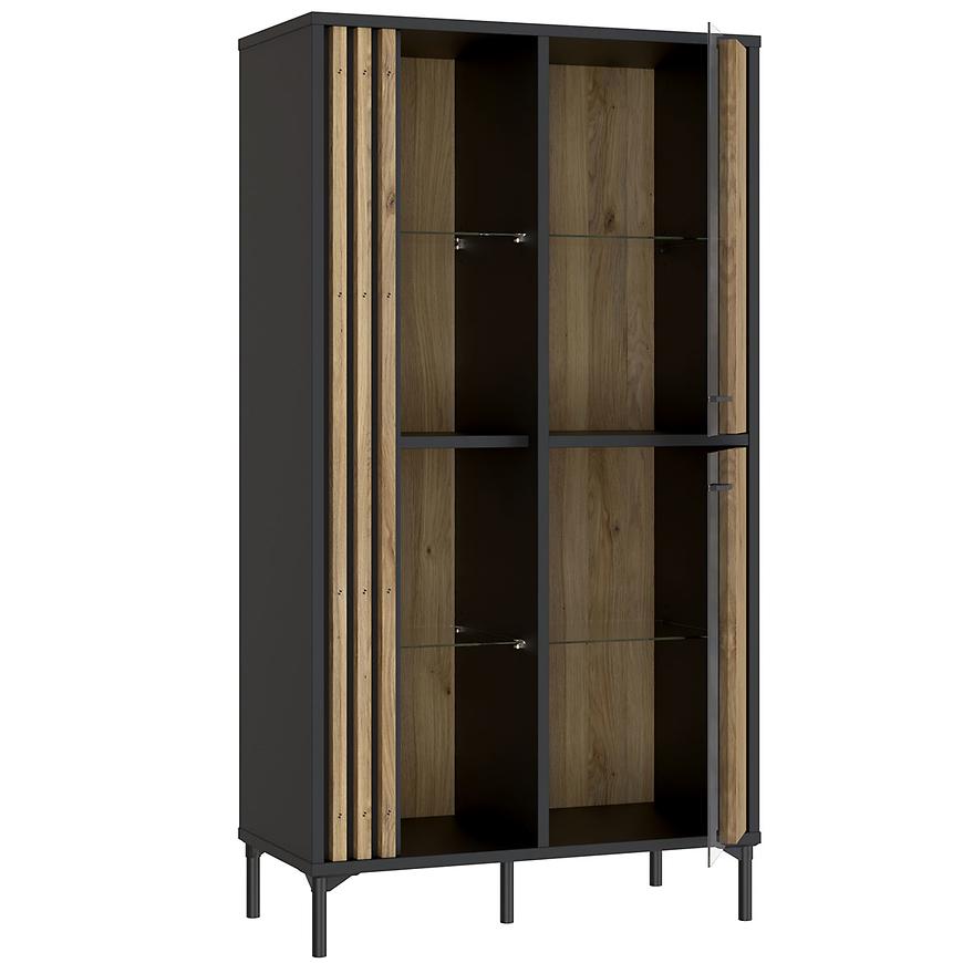 Ta witryna oferuje sporo miejsca do przechowywania i eksponowania przedmiotów. Posiada 6 półek, które umożliwiają wyeksponowanie kolekcji książek, ozdób, czy innych cennych przedmiotów. Dwudrzwiowy segment dodaje funkcjonalności i pozwala na ukrycie mniej estetycznych rzeczy.