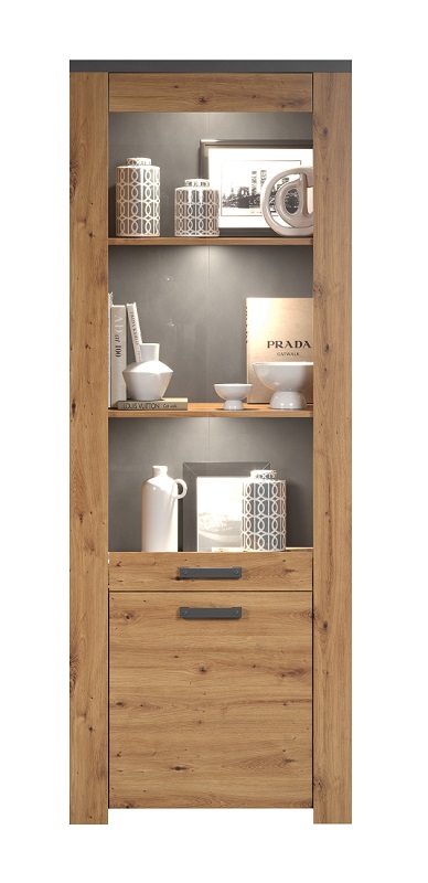 Dodatkowym atutem witryny Follow 1D1W jest możliwość zamówienia oświetlenia LED, które jeszcze bardziej podkreśli elegancję mebla. Oświetlenie to dostępne jest za dodatkową opłatą, jednak warto zainwestować, aby stworzyć atmosferę i podkreślić piękno przechowywanych w witrynie przedmiotów.