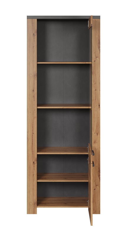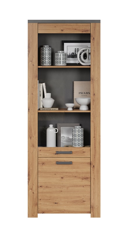 Wnętrze witryny Follow 1D1W zostało przemyślane tak, aby maksymalnie wykorzystać przestrzeń. Cztery solidne półki, wykonane z płyty laminowanej, pozwalają na uporządkowane przechowywanie różnorodnych przedmiotów – od dekoracji po naczynia czy książki. Dzięki temu, wnętrze Twojego domu stanie się nie tylko piękne, ale także funkcjonalne.