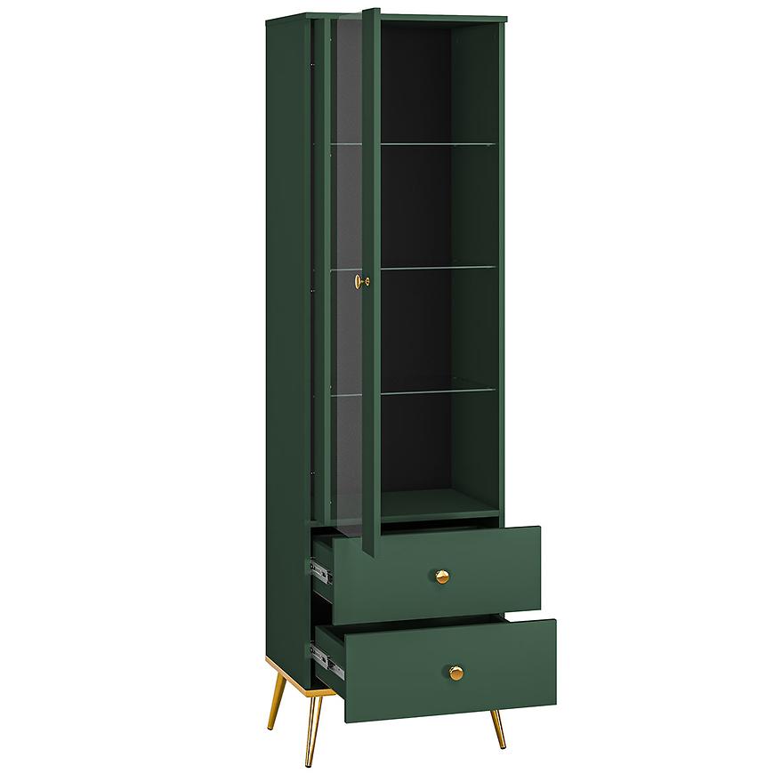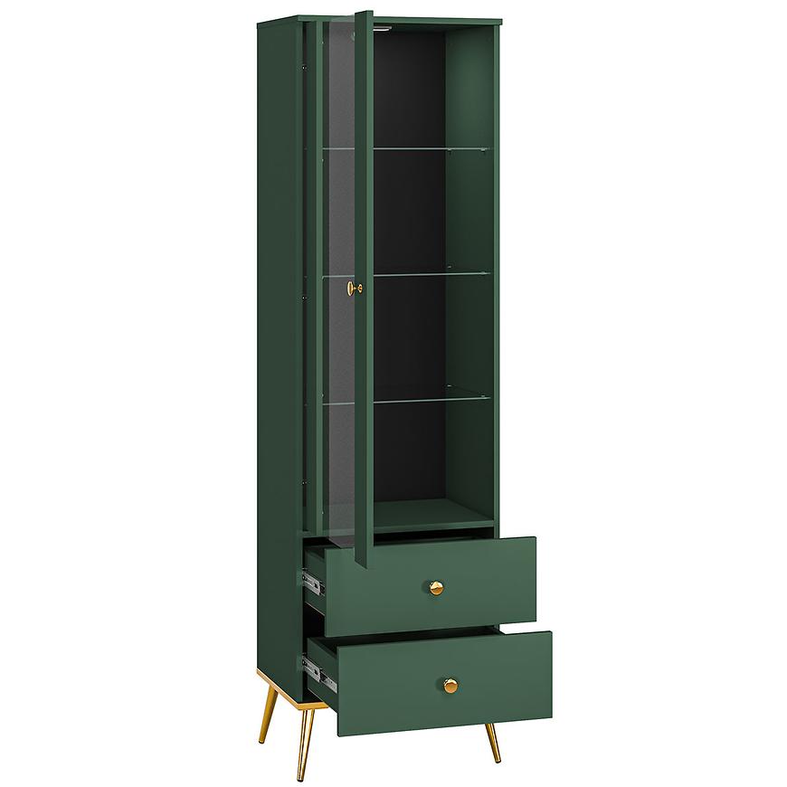 Witryna Forest to elegancki mebel, który doskonale łączy nowoczesny design z funkcjonalnością. Jej głęboki zielony kolor w wykończeniu labrador dodaje wnętrzu wyjątkowego charakteru i przytulności.
