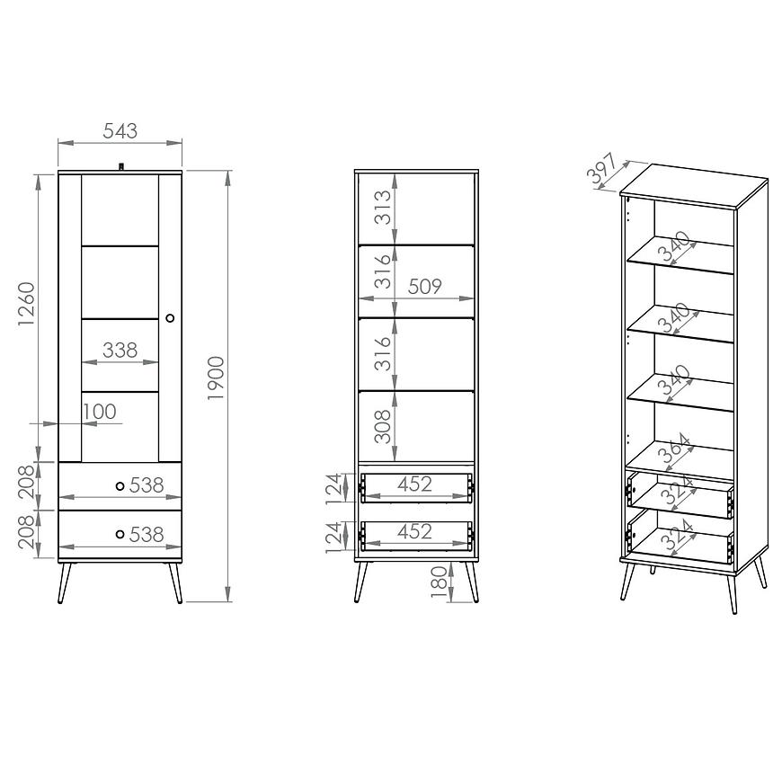 Wykonana z wysokiej jakości płyty wiórowej laminowanej, witryna jest solidna i trwała, co zapewnia długowieczność i odporność na codzienne użytkowanie. Laminowane powierzchnie są łatwe do utrzymania w czystości, co dodatkowo zwiększa jej praktyczność. Witryna Forest wyposażona jest w eleganckie oświetlenie LED, dostępne za dopłatą, które podkreśla jej wnętrze i eksponuje przechowywane przedmioty w wyjątkowy sposób. Oświetlenie LED dodaje meblowi nowoczesnego charakteru i zwiększa jego atrakcyjność.