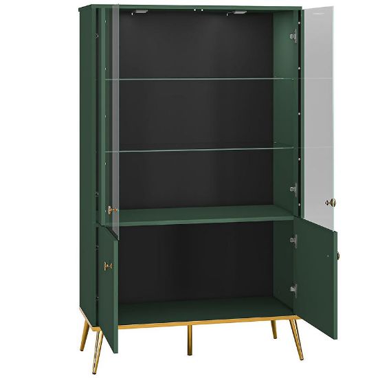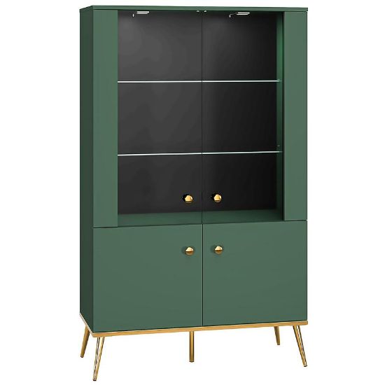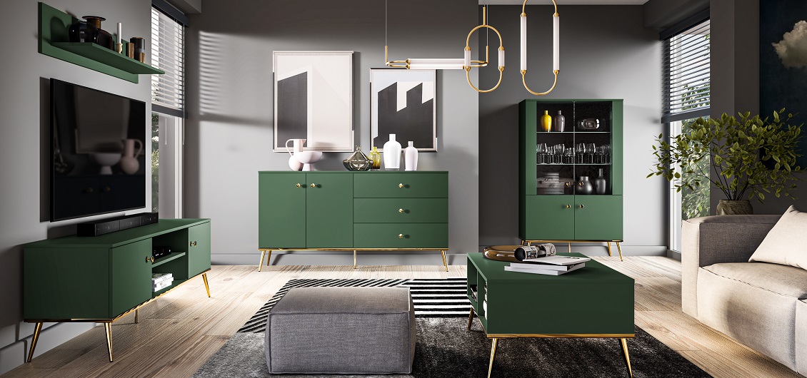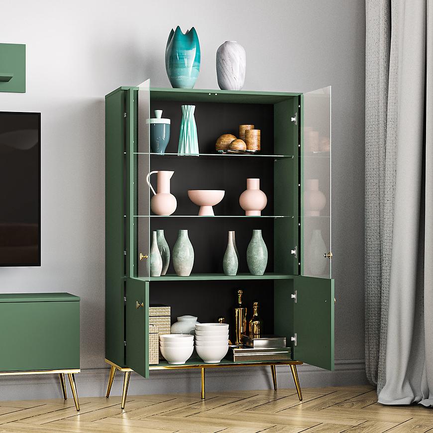Witryna Forest to idealny wybór do salonu, jadalni czy gabinetu. Doskonale sprawdzi się jako miejsce do przechowywania i eksponowania dekoracji, książek czy zastawy stołowej. Jej nowoczesny design i zielona kolorystyka wprowadzą do wnętrza elegancję i świeżość, stając się centralnym punktem każdego pomieszczenia.