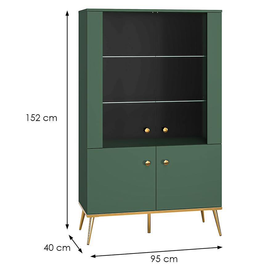 Witryna Forest to elegancki mebel, który doskonale łączy nowoczesny design z funkcjonalnością. Jej głęboki zielony kolor w wykończeniu labrador dodaje wnętrzu wyjątkowego charakteru i przytulności.