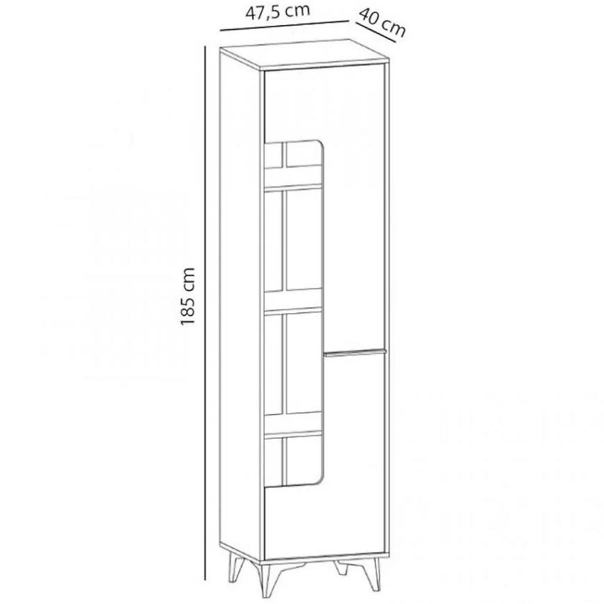 Konstrukcja frontów i korpusu wykonana jest z wytrzymałej płyty wiórowej laminowanej, co zapewnia solidność i trwałość mebla. Witryna jest wyposażona w jednodrzwiową konstrukcję, a także 3 półki, co zapewnia wiele miejsca na przechowywanie książek, dekoracji, naczyń lub innych cennych przedmiotów.