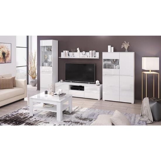 Kolekcja mebli do pokoju dziennego Hill to doskonałe połączenie nowoczesnej elegancji z klasycznym urokiem. Wykonane z solidnej płyty wiórowej laminowanej, meble tej kolekcji prezentują się w białym kolorze, z frontami mebli o błyszczącym wykończeniu oraz matowym korpusie, co tworzy subtelny kontrast i niezwykły efekt wizualny.