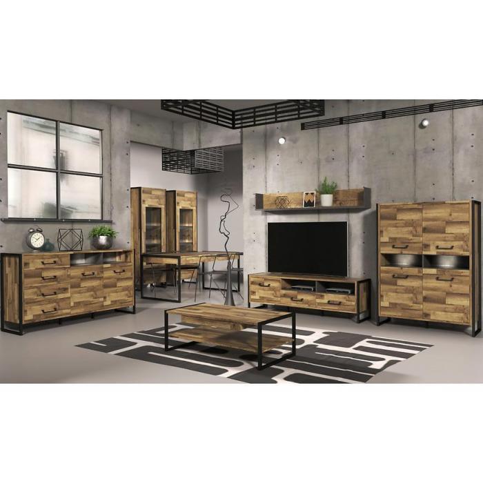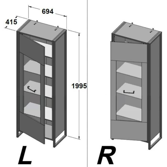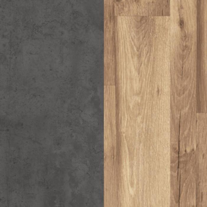 Witryna Hud marki Forte ma 1-drzwiowy, częściowo oszklony front. Interesująca kolorystyka naturalnego dębu klepkowego oraz dekor w przyjemnym, nowoczesnym betonowym odcieniu stworzy niepowtarzalny design w salonie domowym lub gabinecie. Dodatkowym atutem designerskim jest industrialna rama.