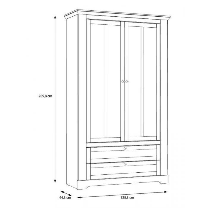 - Mebel posiada parę drzwiczek oraz dwie szuflady