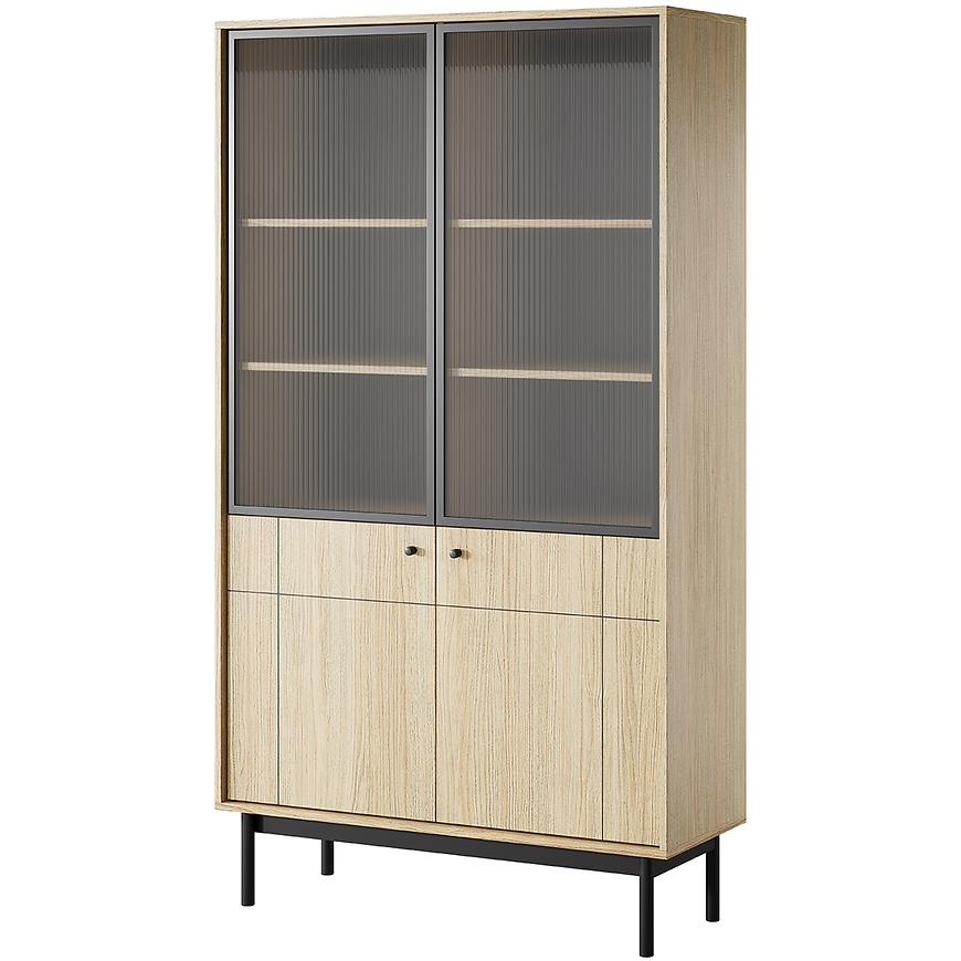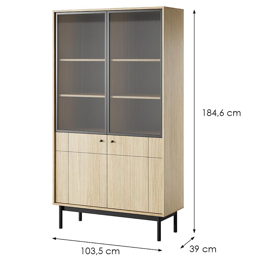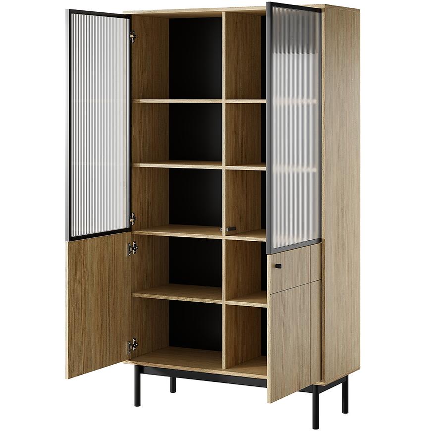 Dwudrzwiowa konstrukcja skrywa aż 8 pojemnych półek, które zapewniają dużo miejsca do przechowywania i eksponowania ulubionych dekoracji, książek czy naczyń. Subtelna kolorystyka dąb linea w połączeniu z minimalistyczną formą sprawia, że witryna doskonale komponuje się zarówno z jasnymi, jak i ciemniejszymi elementami wyposażenia.