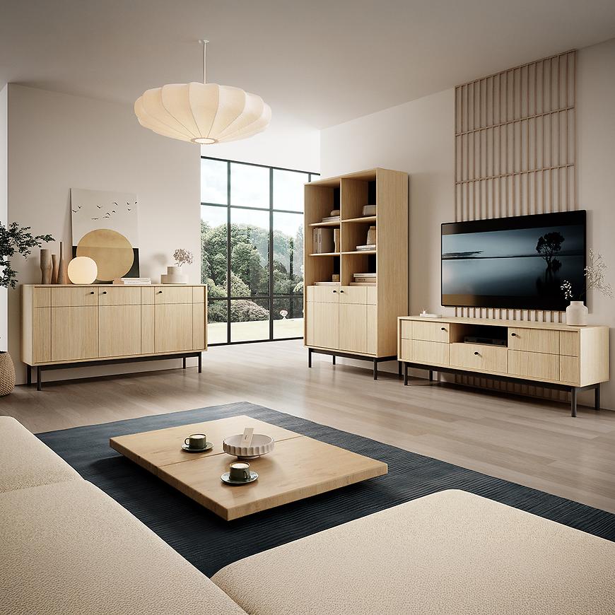 Mebel pochodzi z kolekcji JAPANDI, łączącej skandynawską prostotę z japońskim minimalizmem, co czyni go idealnym wyborem dla osób ceniących harmonię, funkcjonalność i nowoczesny design. Witryna Japandi to praktyczne rozwiązanie do salonu, jadalni lub gabinetu, które podkreśli charakter wnętrza i nada mu wyjątkowego stylu.