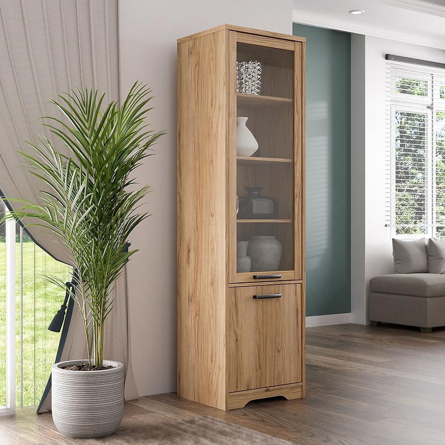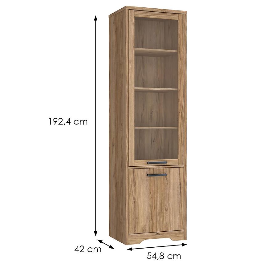 Witryna Jodaki oferuje sporo miejsca do przechowywania i eksponowania przedmiotów. Posiada 5 półek, które umożliwiają wyeksponowanie kolekcji książek, ozdób, czy innych cennych przedmiotów. Dwudrzwiowy segment dodaje funkcjonalności i pozwala na ukrycie mniej estetycznych rzeczy.