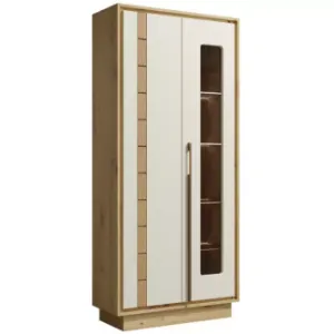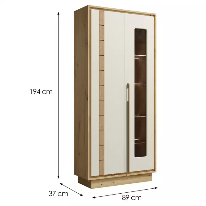 Witryna Keks K2 cashmere to elegancki i nowoczesny mebel, który doskonale wpisuje się w najnowsze trendy aranżacyjne. O wysokości 194 cm, szerokości 89 cm oraz głębokości 37 cm, stanowi idealne rozwiązanie do każdego salonu czy jadalni, gdzie pragniemy zaprezentować swoje ulubione przedmioty, dekoracje lub książki. Jej jasne drewnopodobne wybarwienie w odcieniu cashmere oraz korpus w kolorze artisan wprowadzą do wnętrza przytulną atmosferę, a jednocześnie nadadzą mu elegancji.