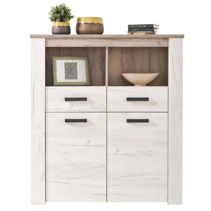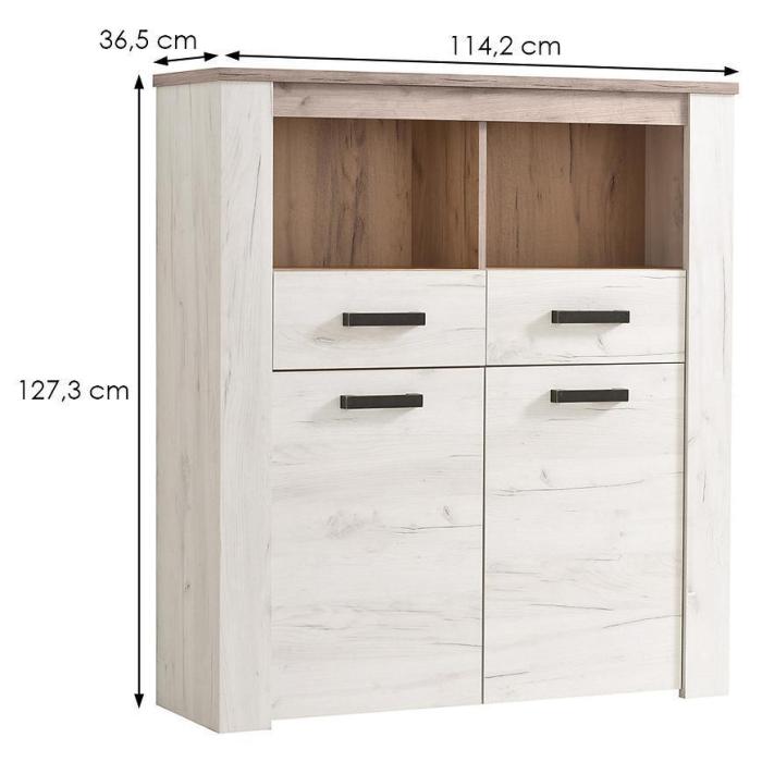 Witryna to praktyczny i funkcjonalny mebel. Korpus oraz front wykonany jest z płyty wiórowej laminowanej. Mebel będzie doskonałym dodatkiem do każdego wnętrza ze względu na swoją uniwersalną kolorystykę.
