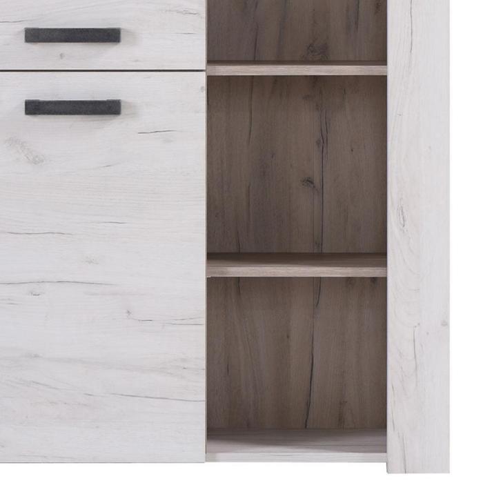 Witryna to praktyczny i funkcjonalny mebel. Korpus oraz front wykonany jest z płyty wiórowej laminowanej. Mebel będzie doskonałym dodatkiem do każdego wnętrza ze względu na swoją uniwersalną kolorystykę.