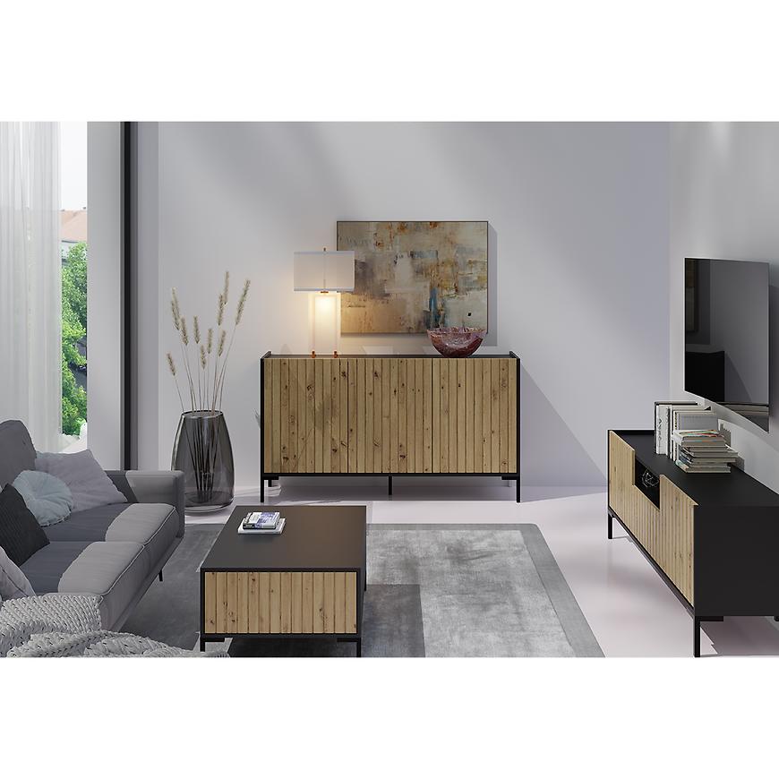 Witryna Lando świetnie prezentuje się w nowoczesnych, a także w industrialnych i loftowych wnetrzach. Witryna to praktyczny i funkcjonalny mebel. Korpus i front wykonany jest z płyty wiórowej laminowanej. Mebel posiada 2 półki, będzie doskonałym dodatkiem do każdego wnętrza ze względu na swoją uniwersalną kolorystykę.