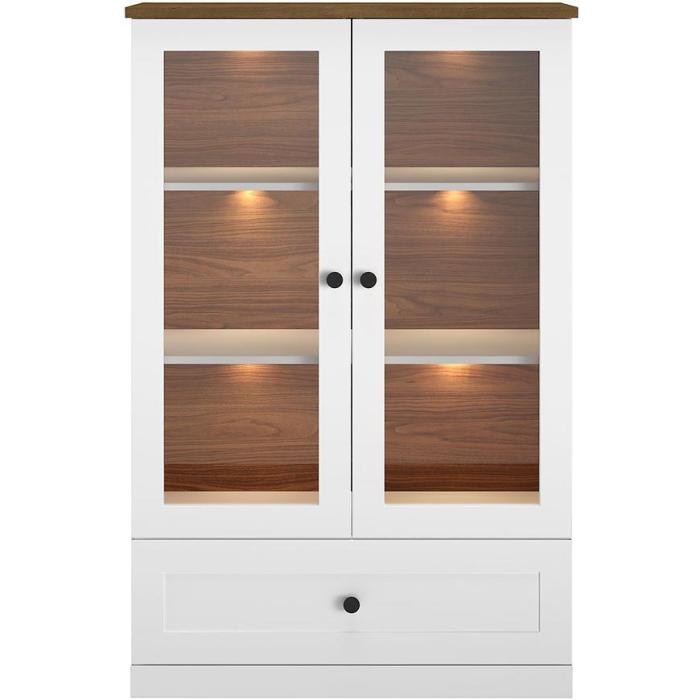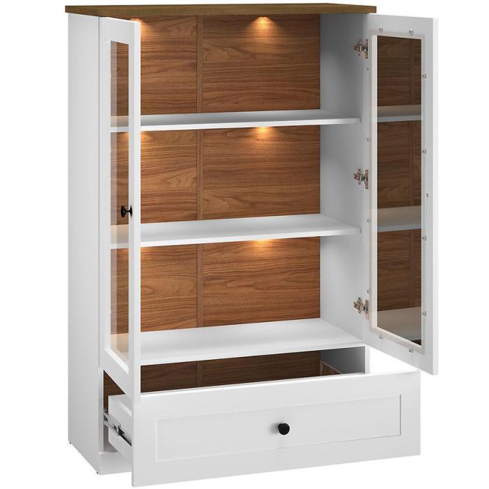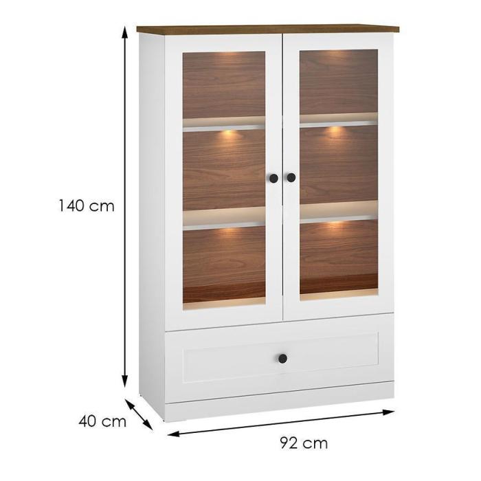 Witryna Lille świetnie prezentuje się w nowoczesnych, a także w klasycznych wnętrzach. Witryna to praktyczny i funkcjonalny mebel. Korpus wykonany jest z płyty wiórowej laminowanej, front to płyta MDF. Mebel będzie doskonałym dodatkiem do każdego wnętrza ze względu na swoją uniwersalną kolorystykę.
