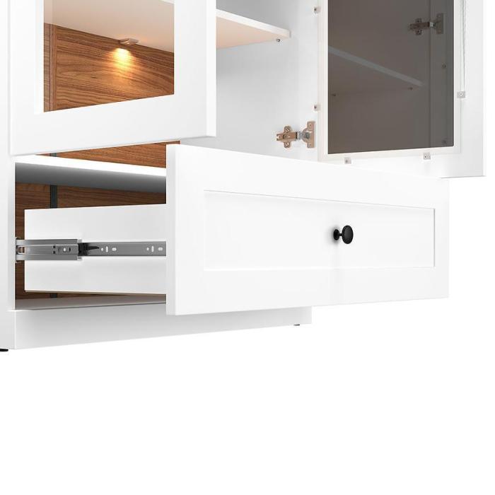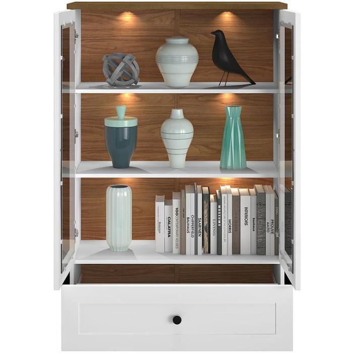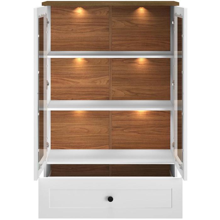 Kredens półotwarty z przeszklonymi drzwiczkami i półkami to mebel, który pozwala na wyeksponowanie ulubionych dekoracji, naczyń czy książek. To także doskonałe rozwiązanie do salonu, gdzie dodatkowa przestrzeń do prezentacji rzeczy jest zawsze mile widziana.