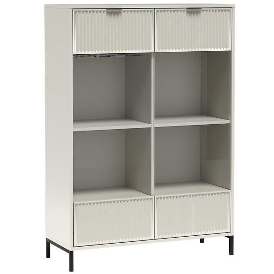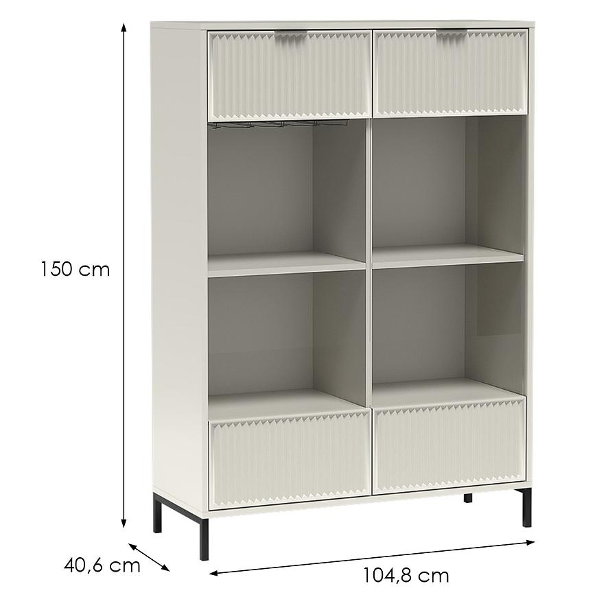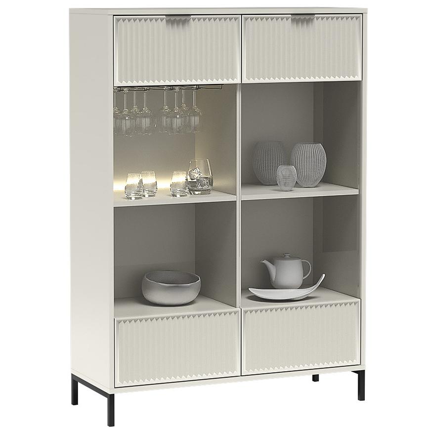 Dwudrzwiowa konstrukcja witryny Link A Styles zapewnia dostęp do przestrzeni przechowalniczej, gdzie można pomieścić naczynia, szklanki, ozdobne wazony czy inne cenne przedmioty. Dodatkowo, witryna posiada 4-rzędowy uchwyt na kieliszki do wina, co umożliwia eleganckie przechowywanie i prezentację szklanek. Możliwość dodatkowego oświetlenia półki sprawia, że witryna może stać się wyjątkową witryną wystawową, podkreślając piękno przechowywanych przedmiotów.