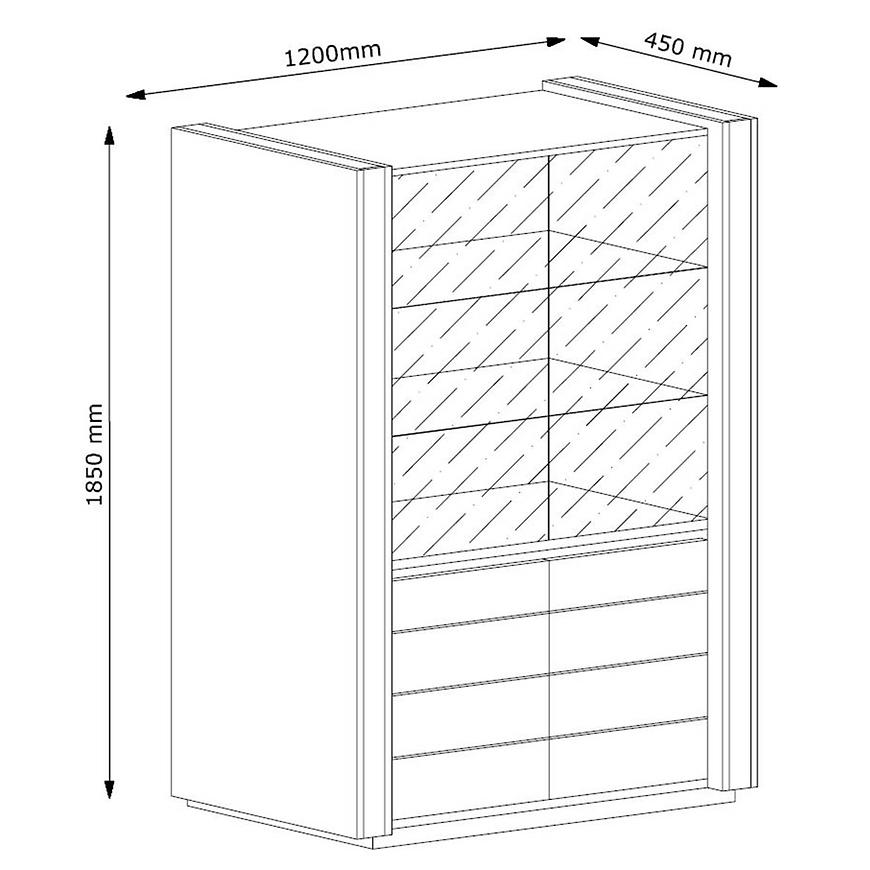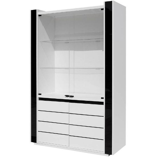 Połączenie nowoczesnego designu z nutą glamour, co nadaje jej wyjątkowego charakteru. Dostępna jest w dwóch wariantach kolorystycznych: białym połysku i czarnym połysku. Fronty witryny są wykończone połyskiem, co nadaje meblowi efektownego blasku, podczas gdy biały połysk korpusu tworzy elegancki kontrast. To mebel, który na pewno przyciągnie uwagę i stanie się ozdobą Twojego wnętrza.