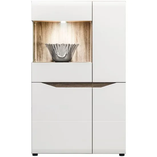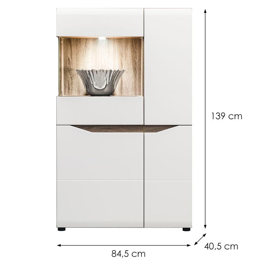 Witryna Lionel Li05 Dąb S./Biały to elegancki i praktyczny mebel, który doskonale sprawdzi się w nowoczesnych wnętrzach. Połączenie ciepłego odcienia dębu sonoma z białymi frontami nadaje jej stylowy i harmonijny wygląd. Przeszklona część umożliwia wyeksponowanie dekoracji, książek lub zastawy stołowej, a zamknięte półki zapewniają dodatkowe miejsce do przechowywania. Idealna do salonu, jadalni lub gabinetu, łącząc estetykę z funkcjonalnością.