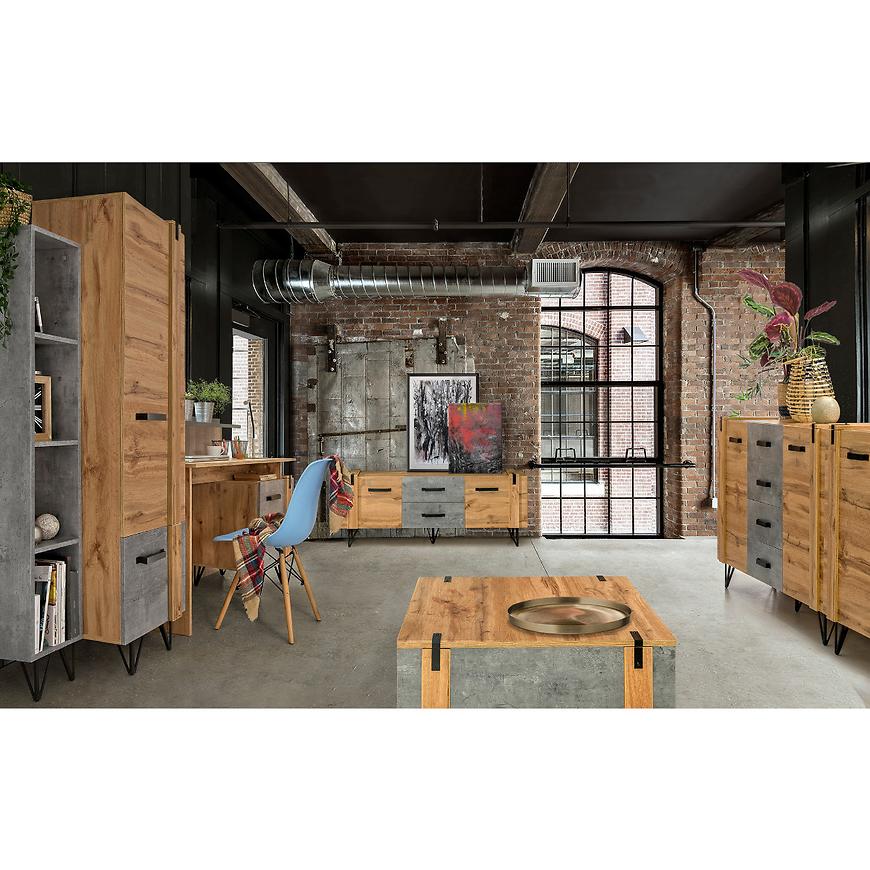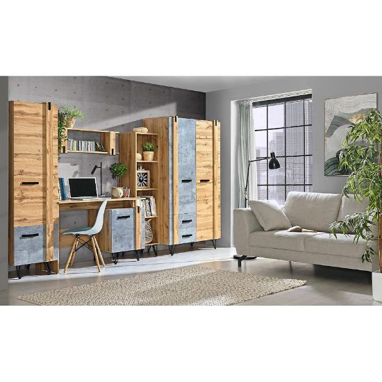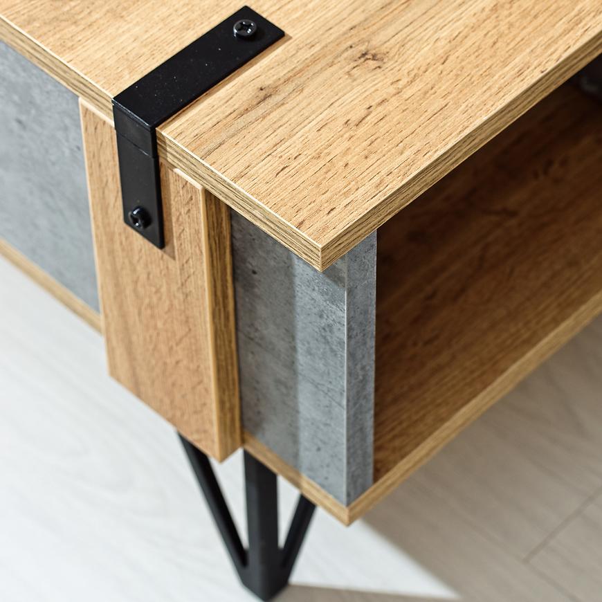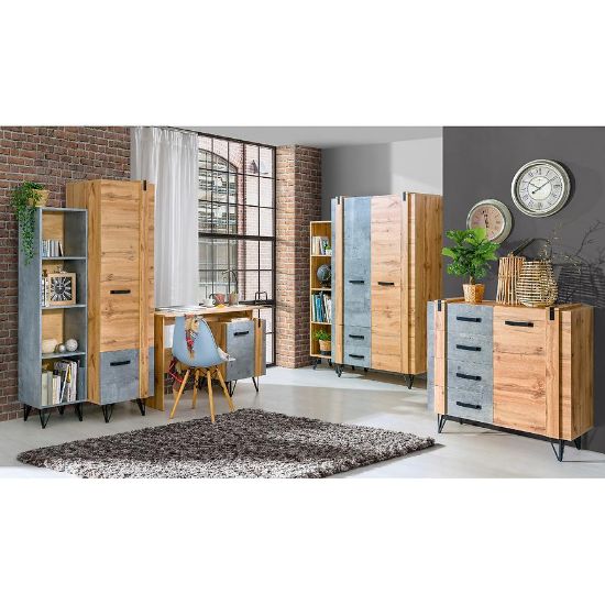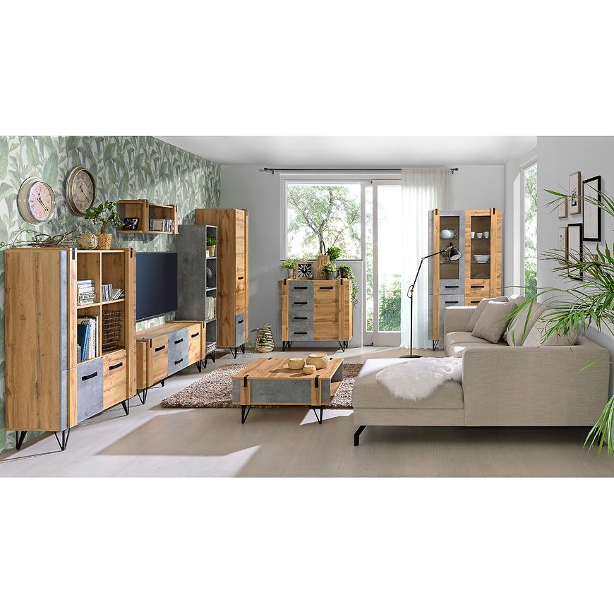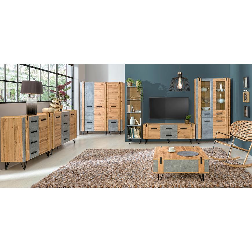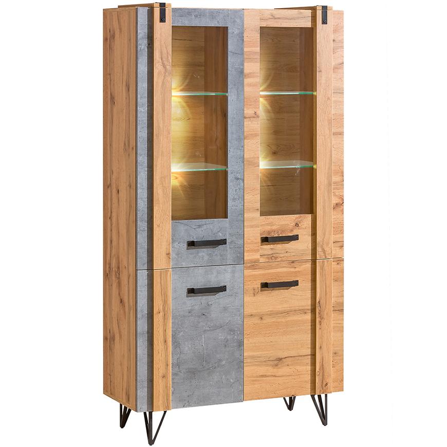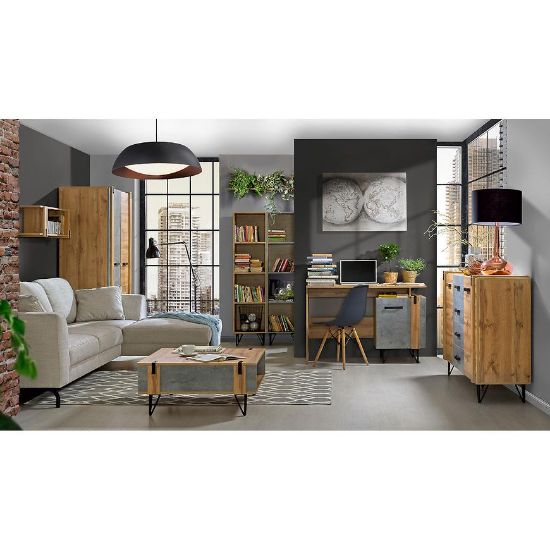 Witryna Lofter świetnie prezentuje się w nowoczesnych, a także w klasycznych wnętrzach. Witryna to praktyczny i funkcjonalny mebel. Korpus i front wykonany jest z płyty wiórowej laminowanej. Mebel będzie doskonałym dodatkiem do każdego wnętrza ze względu na swoją uniwersalną kolorystykę.