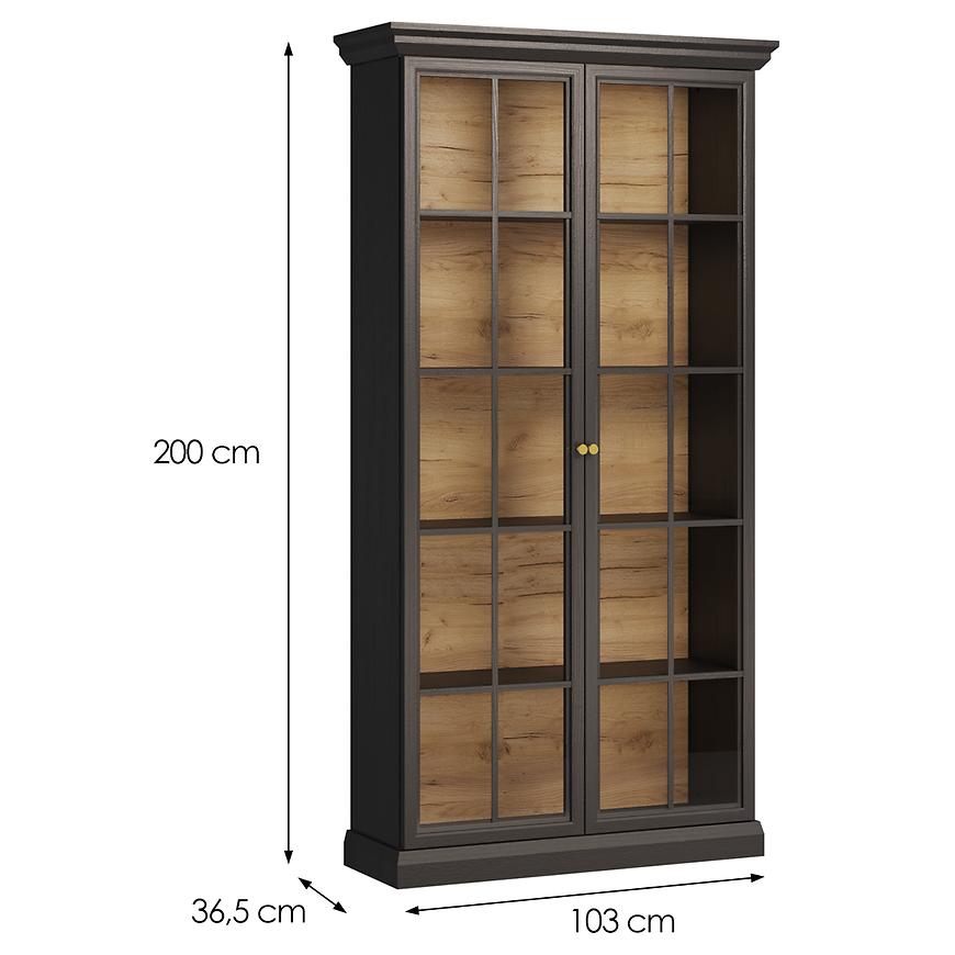 Witryna Lucca W2D czarny grafit to mebel o klasycznej formie i eleganckim wykończeniu, który doskonale wpisuje się w różnorodne aranżacje.