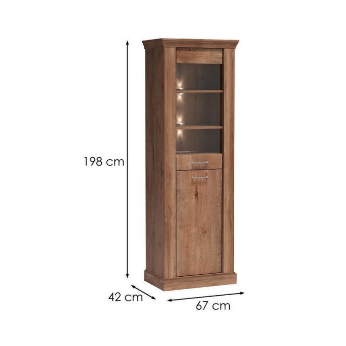Witryna z kolekcji Antica wykonana z płyty wiórowej laminowanej to nowoczesny i funkcjonalny moduł. Dzięki temu, że posiada szafki i 4 półki może służyć jako mebel do przechowywania np: książek lub innych drobnych rzeczy. Będzie doskonałym uzupełnieniem aranżacji salonu lub pokoju dziennego z innymi meblami z kolekcji Antica.