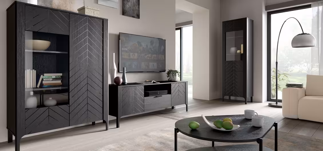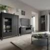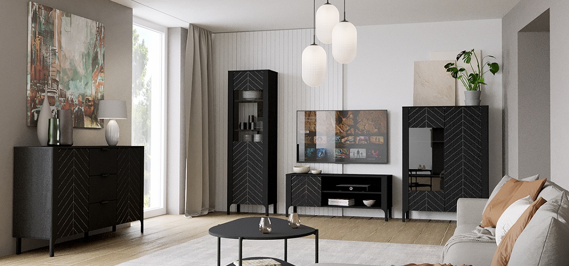 Kolekcja mebli do pokoju dziennego Malumi to propozycja dla miłośników nowoczesnego stylu i minimalistycznej elegancji. Wykonane z wysokiej jakości płyty wiórowej laminowanej meble charakteryzują się trwałością i odpornością na codzienne użytkowanie. Dekor black malumi w matowym wykończeniu nadaje kolekcji wyrafinowanego, a jednocześnie uniwersalnego charakteru, dzięki czemu doskonale komponuje się z różnymi aranżacjami wnętrz.