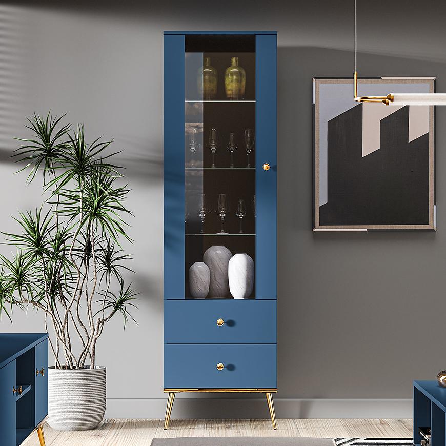 Styl: Witryna Marine wpisuje się w nowoczesne trendy wnętrzarskie, charakteryzując się prostymi liniami i minimalistycznym wyglądem. Jej elegancki design i głęboki odcień ciemnego błękitu sprawiają, że doskonale komponuje się z różnymi stylami wnętrzarskimi, od nowoczesnych po klasyczne.