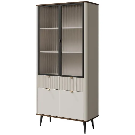 Wprowadź do swojego wnętrza nowoczesny styl i praktyczne rozwiązania dzięki witrynie Marly w kolorze Orzech/Kashmir. Ten elegancki mebel z kolekcji MARLY zachwyca minimalistycznym designem i matowym wykończeniem, które nadaje całości subtelnej, a zarazem wyrafinowanej estetyki. Idealnie wpasuje się zarówno w salonie, jadalni, jak i domowym biurze.