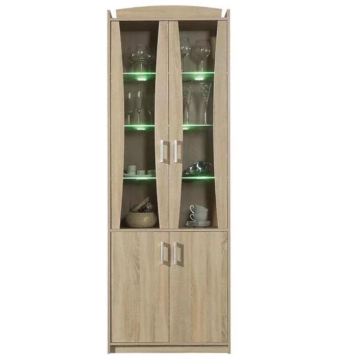 Witryna Mega świetnie prezentuje się w nowoczesnych, a także w klasycznych wnętrzach. Witryna to praktyczny i funkcjonalny mebel. Korpus i front został wykonany z płyty wiórowej laminowanej. Witryna posiada 4 półki. Mebel będzie doskonałym dodatkiem do każdego wnętrza ze względu na swoją uniwersalną kolorystykę.