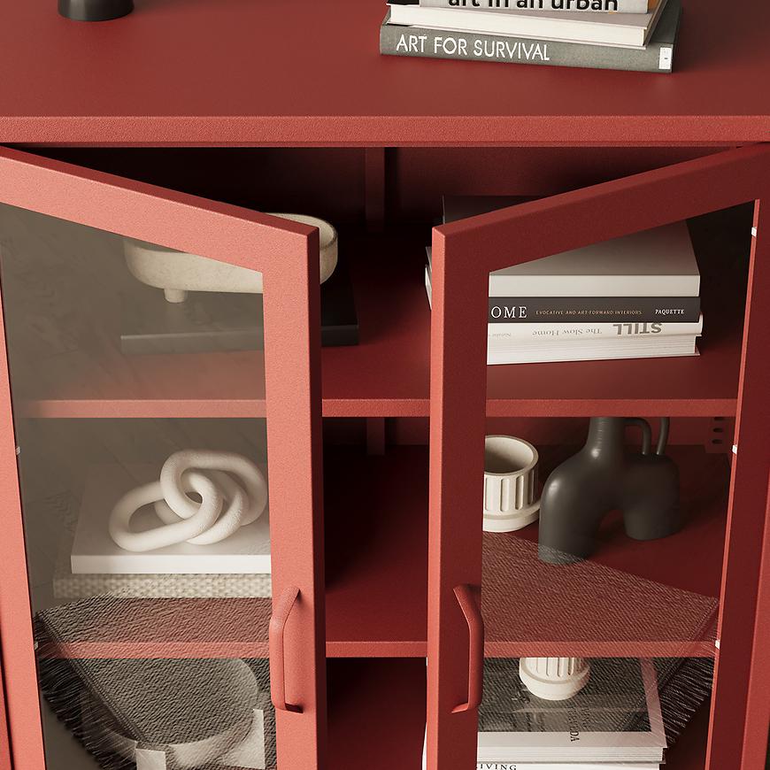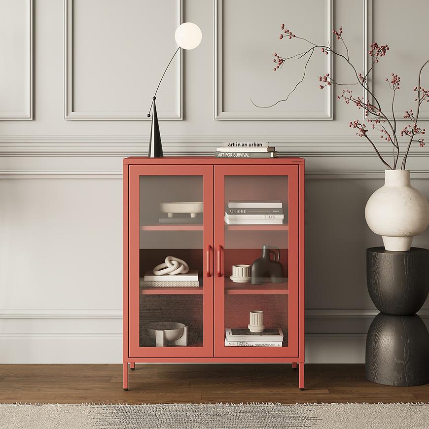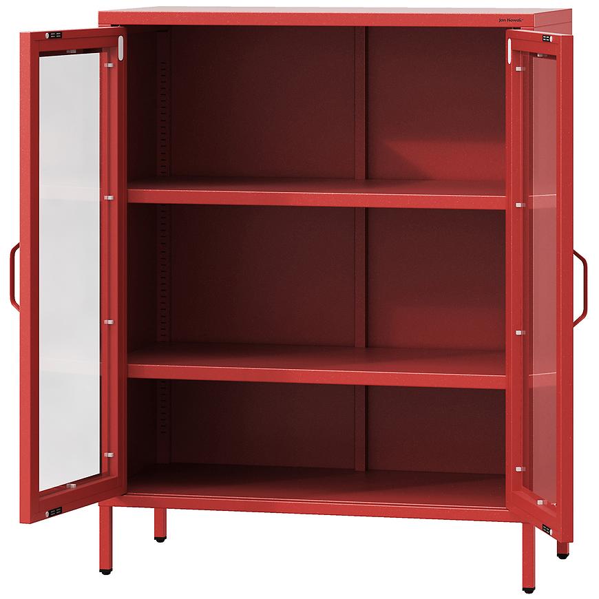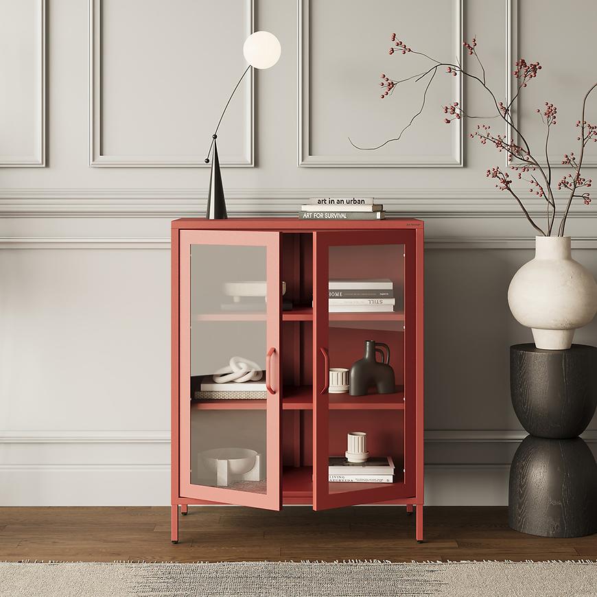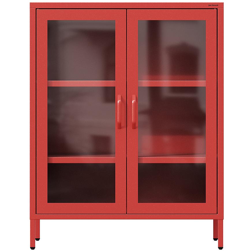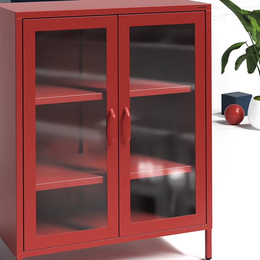 Witryna Metalowa Gina Modern Red to stylowy mebel w intensywnym czerwonym kolorze, wykonany w loftowym stylu. Konstrukcja z metalu z matowym wykończeniem frontów i korpusu zapewnia trwałość i nowoczesny wygląd. Dwudrzwiowa witryna o wymiarach 101,5 x 80 x 40 cm doskonale sprawdzi się jako oryginalny element wyposażenia wnętrza. Produkt z kolekcji GINA MODERN wymaga złożenia i nie posiada oświetlenia.