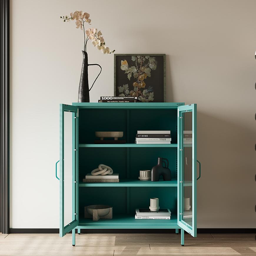 Witryna metalowa Gina Modern Sea Green – nowoczesna elegancja do salonu.