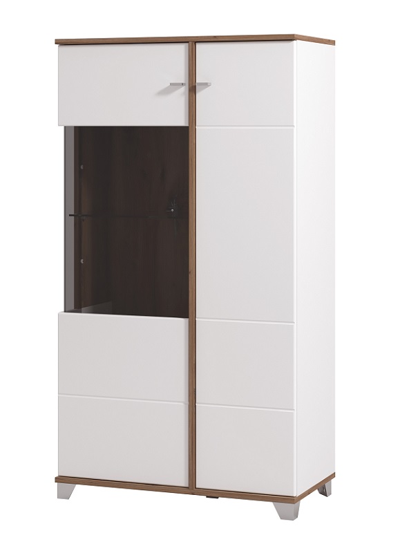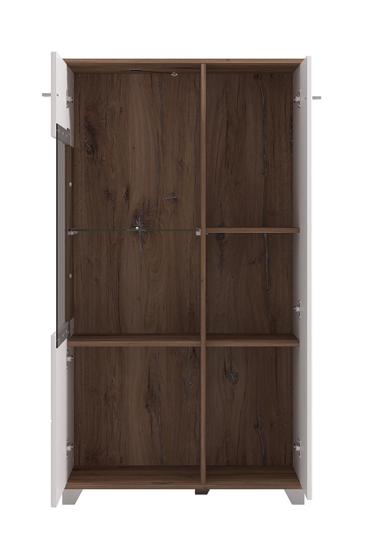 Ta dwudrzwiowa witryna jest doskonałym rozwiązaniem dla osób ceniących zarówno estetykę, jak i praktyczność. Posiada cztery półki, które zapewniają dużo miejsca do przechowywania i eksponowania Twoich ulubionych przedmiotów. Drzwi uchylne są wygodne w użytkowaniu i umożliwiają łatwe dostępy do wnętrza witryny.