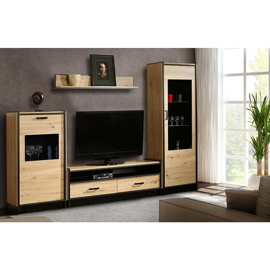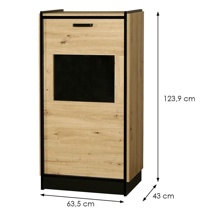 Jasne drewnopodobne wybarwienie w odcieniu dąb artisan oraz wykończenie matową powłoką nadają witrynie wyjątkowego charakteru. To połączenie sprawia, że doskonale komponuje się z nowoczesnym wystrojem wnętrza, dodając mu ciepła i naturalnego uroku.